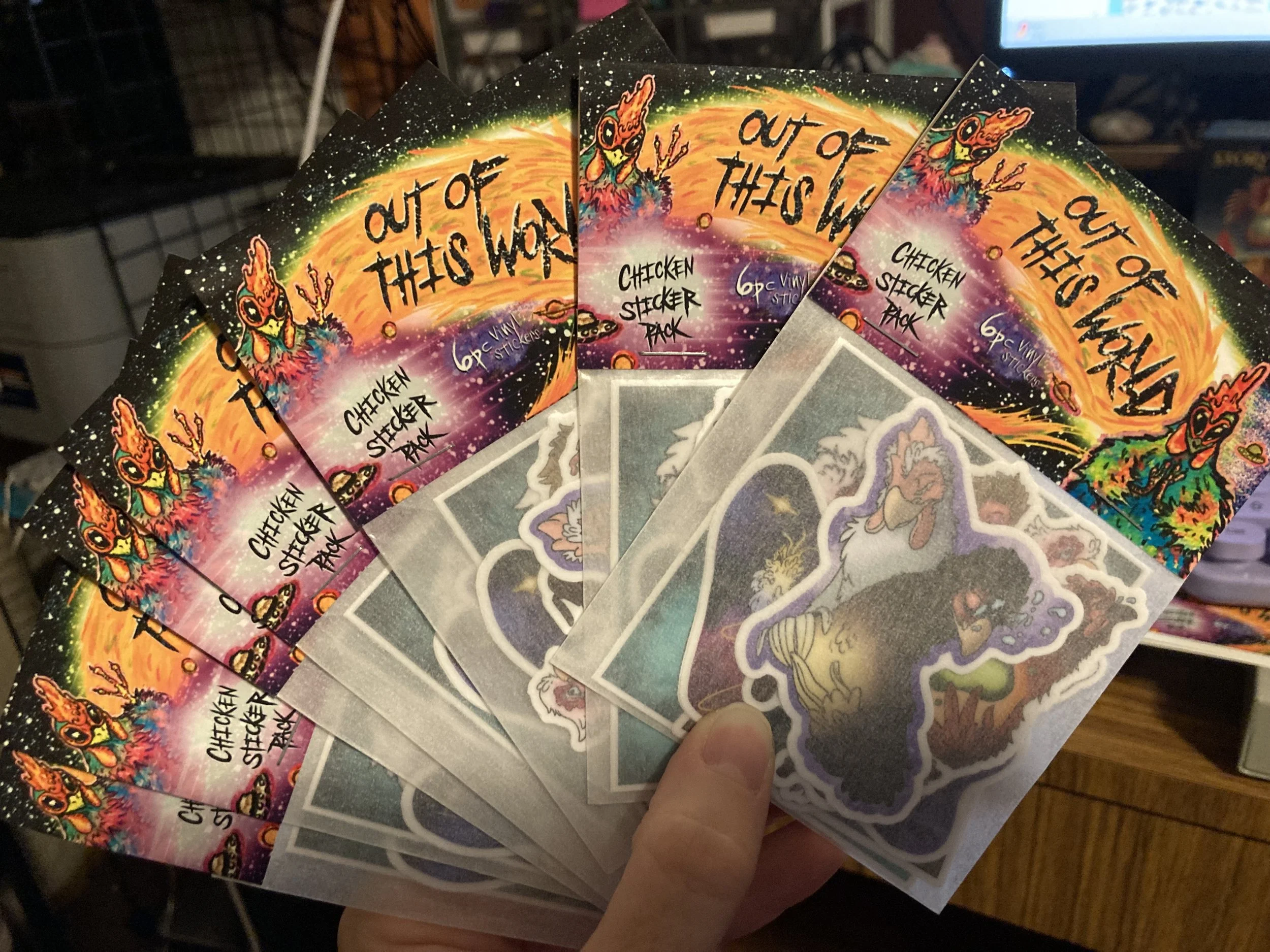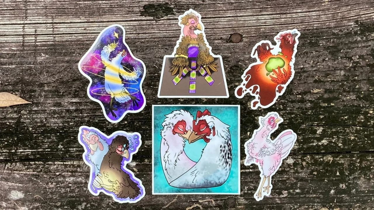Wholesale Categories: All Decks Stickers Zines All | Decks | Stickers | Zines | Chicken Transition Oracle Deck 2nd Edition $125.00 What The Heck is an Oracle Deck? Zine $30.00 Art for Survival Die Cut Sticker $7.50 Empathy Chickens Die Cut Sticker $7.50 Inner Voice Rooster Chicken Die Cut Sticker $7.50 Fluffy Butt Loyalty Hen Chicken Die Cut Sticker $7.50 Barred Rock Hen Chicken Die Cut Sticker $7.50 Alien Hen Chicken Die Cut Sticker $7.50 Extra Terrestrial Alien Rooster Chicken Die Cut Sticker $7.50 Out of this World Chicken Vinyl Sticker Pack $30.00 MY FAIRE SHOP